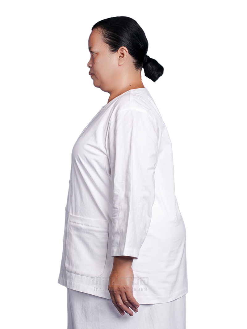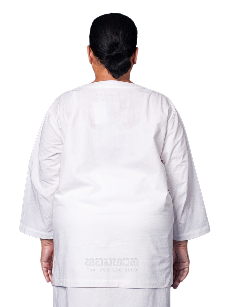 เสื้อคอกลมแขนกระบอกสมณวิสัย จะทำให้ความรู้สึกถึงความบริสุทธิ์ ผุดผ่องตั้งแต่ครั้งแรกที่สวมชุดนี้ คอเสื้อและกระดุมดูเรียบง่ายสุดๆสำหรับผู้หญิงหุ่นใหญ่เหมาะสำหรับการปฎิบัติธรรม จงกรม กรรมฐาน นั่งสมาธิ ฟังเทศ ฟังธรรม ด้วยฝีมือการออกแบบของทีมงานหอมหวลผลิตด้วยวัสดุคุณภาพที่ดีเยี่ยม เนื้อผ้าไม่บางมากและระบายความร้อนได้ดี ให้ความรุ้สึกสะดวงสบายทุกครั้งที่สวมใส่ไม่ว่าจะเป็นในหรือนอกสถานที่ก็ได้ทั้งนั้น